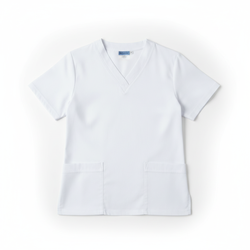 Son col en V apporte une touche contemporaine et facilite l’enfilage. Dotée de coutures renforcées et de poches fonctionnelles pour stylos et accessoires, cette blouse allie résistance et utilité dans tous les environnements médicaux.