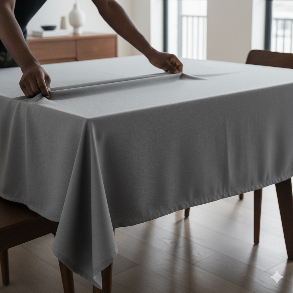 Le format 2m x 2m convient parfaitement aux grandes tables carrées, offrant une protection complète et un rendu élégant pour toutes vos occasions professionnelles ou événements spéciaux.