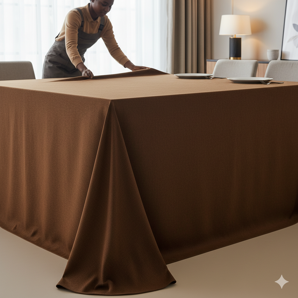 Le format 3m est idéal pour les longues tables rectangulaires ou les grandes surfaces nécessitant une protection complète, tout en offrant une apparence professionnelle irréprochable.